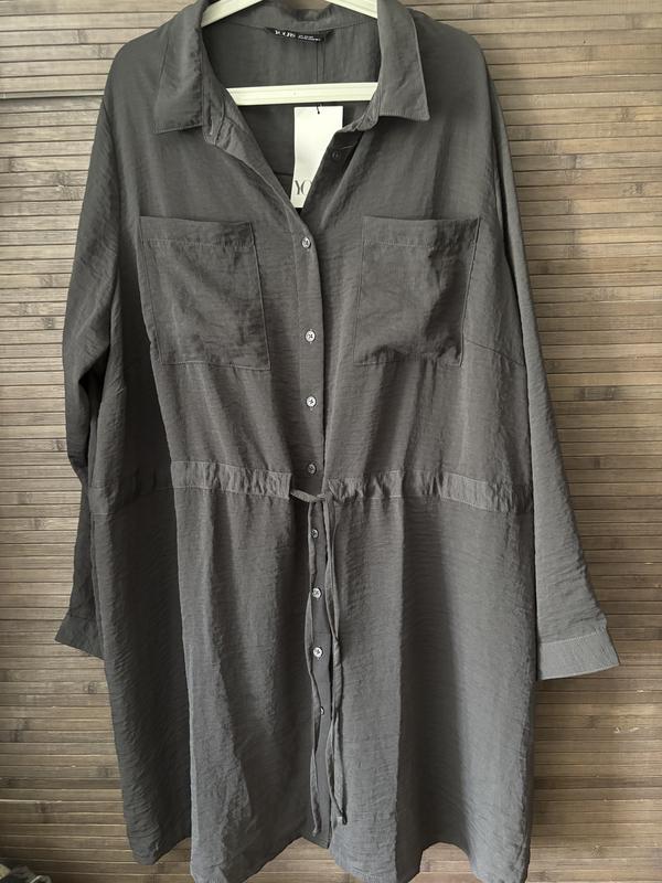 Абсолютно нова сукня туніка з жатки, типу муслін тканини. Дуже гарний графітовий колір. Чудово під леггінси. Легенька, на літо не спекотне чудове рішення. Купляла на сайті 28 євро зі знижкою. Пог 73, рукав 66, поб 82, довжина 100.