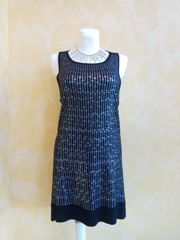 АРТ. 3/1/8/31 Стильная трикотажная туника в пайетки от бренда Mango, коллекция MNG casualsportswear. Состояние идеальное, без следов носки. Качество изумительное, цвет черный, спереди полностью расшита пайетками цвета "матовый металлик". Размер указан L. Замеры: ПОГ 47-53 см, ПОТ 45-48 см, длина от плеча 91 см. Если возникли вопросы, пишите, подскажу. Возможен разумный торг.