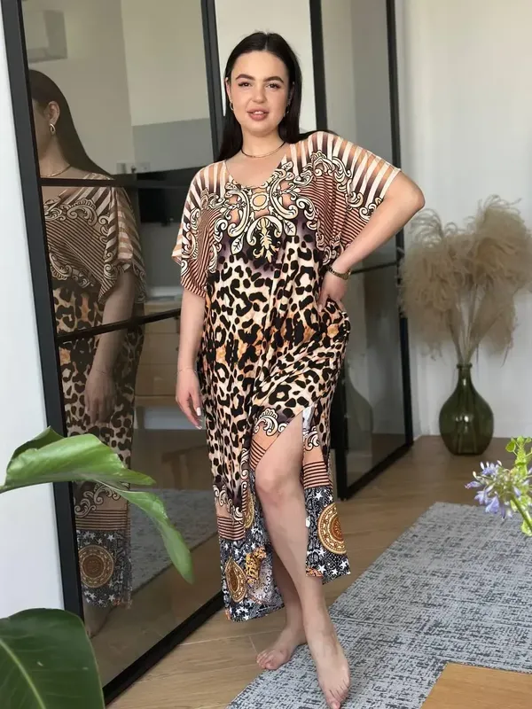 Наша новинка для девушек PLUS SIZE - это легкость, свобода и магия смешанных узоров, созданных, чтобы окутать твои формы комфортом и стилем SW677 Микс принтов: леопард + барокко + этно V-образный вырез с декоративными элементами в зоне декольте - вытягивает шею и делает образ элегантным Ткань софт легкая, быстро сохнет, не мнется в чемодане Универсальность: накидывай поверх купальника для пляжа или стилизируй с сандалиями и поясом для прогулки по городу. Этот летний must-have станет твоим любимым комплиментом к любому моменту отпуска. грудь /стегна до 155 см Заказывай прямо сейчас и дай своей уникальности звучать громко этим летом!