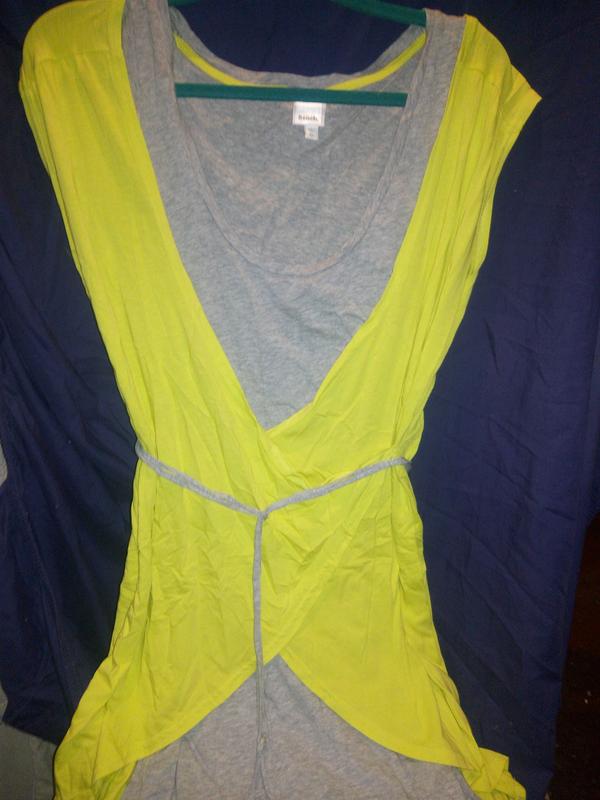 двухслойное платье-туника с пояском шнурочком, яркого лимонного цвета с серым,размер хл.