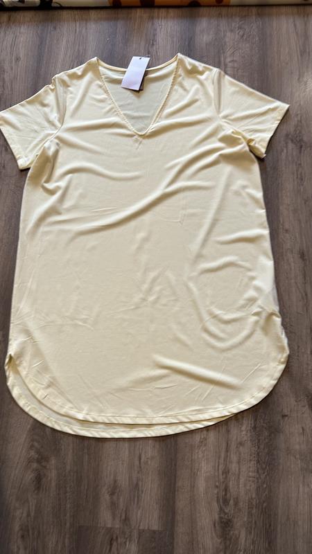 Сукня туніка, трапеція, трохи просвічує. Тканина еластична Довжина 90 Пог 57 Поб 60 Колір ніжний пастельний жовтий