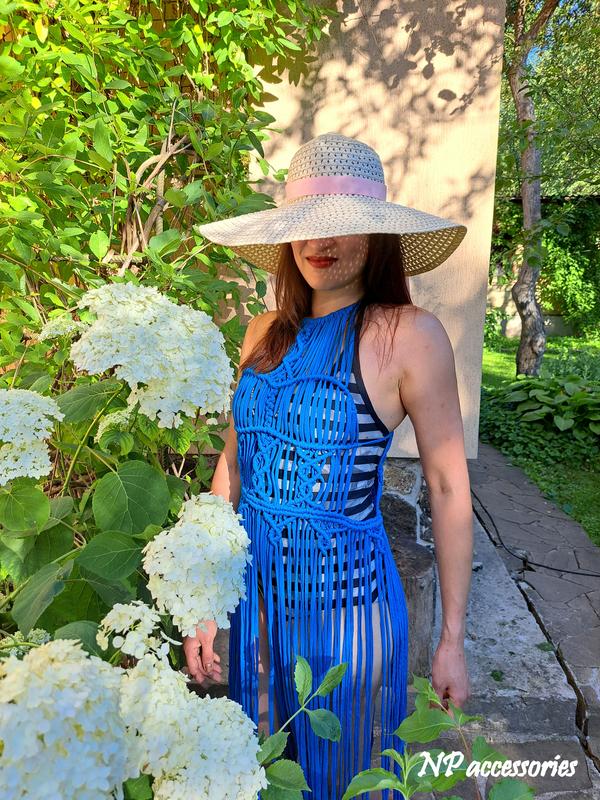 Макраме платье «Дана’ из хлопка для смелых и неординарных барышень! Идеальна для пляжного отдыха, фотосессий, фестивалей. Материал – трикотажная пряжа яркого синего цвета, очень приятная к телу. Размер M-L