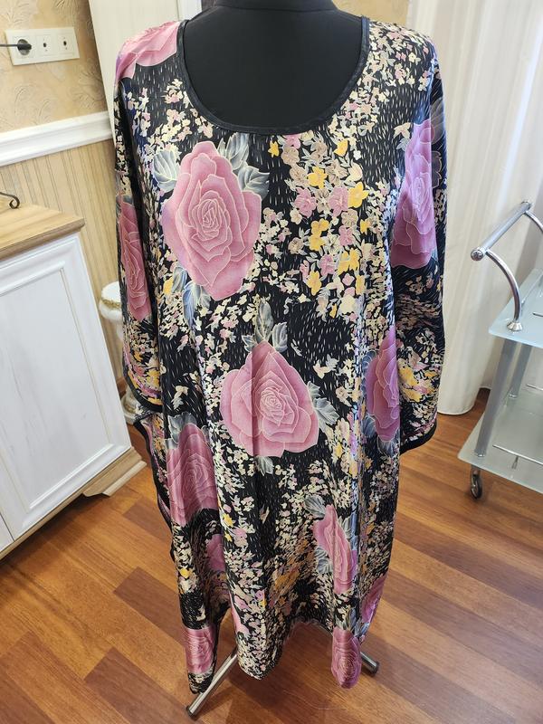 яркое платье кимоно из атласа на 64-66 размер. ОГ 160, ОБ160, длина 110