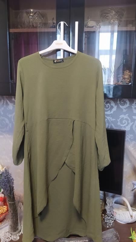 туника Турция на теле смотрится очень интересно оливковый цвет состояния нового один раз приема