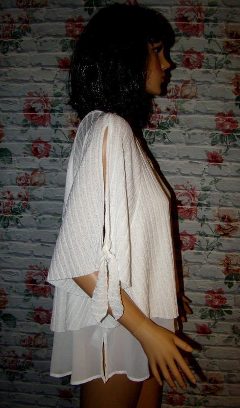 Заказы через кнопку «Купить» я не оформляю(есть на то причины) В новом состоянии - была одета 1 раз,двухслойная ткань - низ шифоновый,верх мелкая вязка в широкий рубчик(очень тянется,шифон не тянется),размер указан M/L.но из-за особенности фасона универсальный - на манекене(S,XS) тоже смотрится Ширина по талии 120 см,длина 56/61 см(сзади длиннее),ширина между подмышками 57 см,рукав 38 см(от выреза),низ 136 см (по бокам разрезы по 12 см Доставка и условия продажи: 100% оплата на карточку,доставка Новой или Укрпочтой или самовывоз - Киев(Троещина) возврата,обмена нет через кнопку "купить" я не оформляю,т.к.заранее не знаю номер отделения