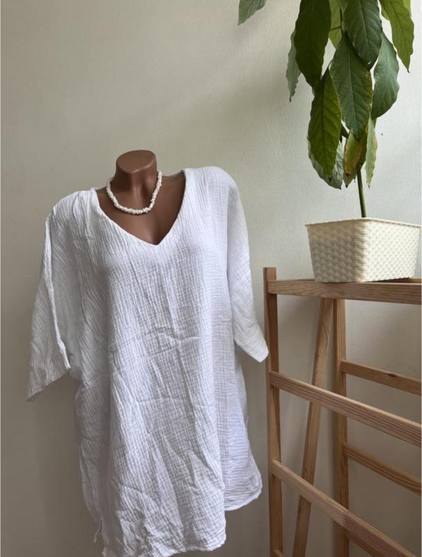 Батальна біла туніка з муслину / жіноча туніка з муслину/ жіноча біла блуза туніка бавов...