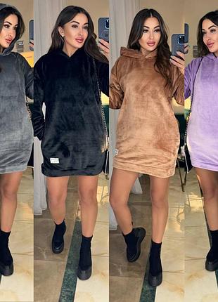 🔥НОВИНКА🔥 Платье-туника Модель 2069 Размеры: 42-46, 48-52 Ткань двухсторонняя махра (очень мягкая и теплая) Цвета: лаванда, графит, черный, мокко