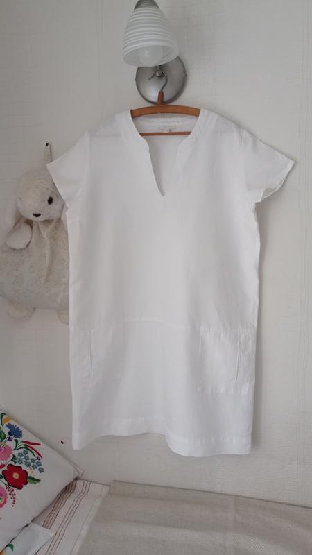 Плотный лен, в безупречном состоянии, выстирывается и выглажено, надевай и носи. Может быть и как короткая сукочка, и как туника под брюки. Размер по набору 16, но не уверена, поэтому ориентируйтесь на замеры. Плечи - 42, подмышками - 56, талия - 58, бедра - 60, длина - 93.