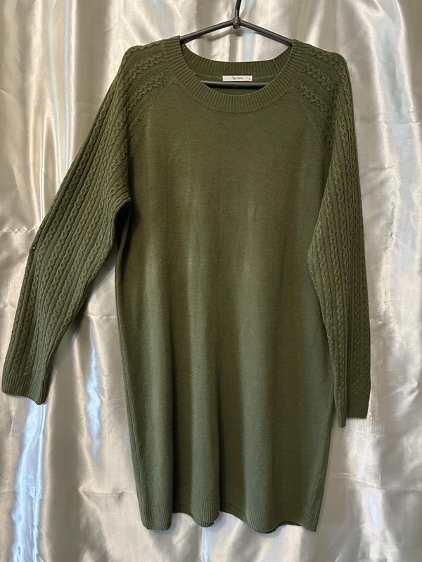 Пів обхват грудей,талії,стегна 54 Довжина виробу 84 Довжина рукава від горловини 74 Колір хакі,тягнеться,приємний до тіла) Можна одягати як светр,плаття,туніку,дивлячись який у вас зріст))