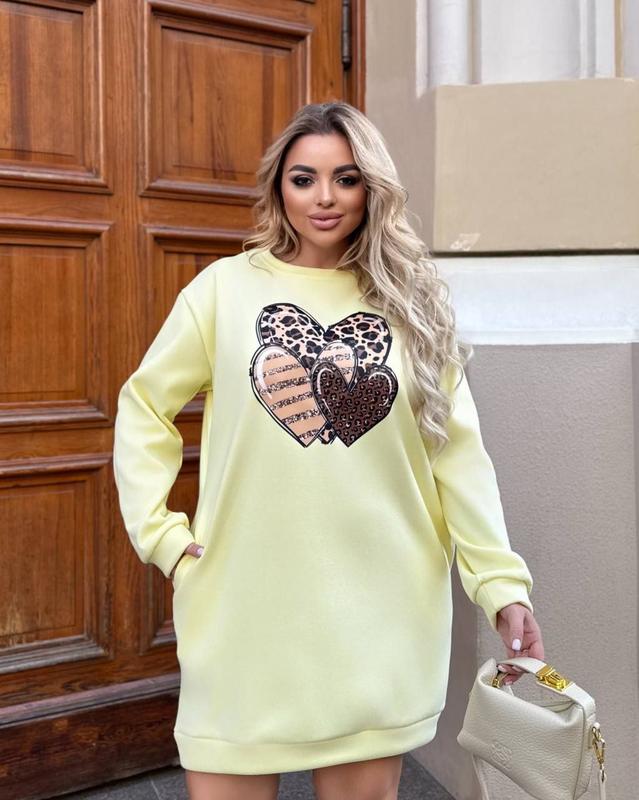 Плаття -туніка з накатом сердечки лео Кольори Барбі, малинка, сірий, шоколад, банан Тканина якісна тринитка з начісом Розміри 48-52, 54-58 Заміри 48-52 довжина плаття 90, рукав від горла 80 , груди талія та стегна рекомендовано до 120 54-58 довжина плаття 95, рукав від горла 85, груди , талія та стегна рекомендовано до 135 Ціна 1100грн