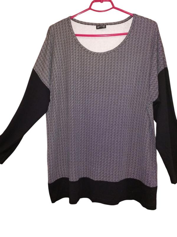 туника вискоза 62-66р, указаемый 50/52 европ. размер, СТОК, в идеальном состоянии, трикотажная вискозная ткань - тянется. ПОГ - 68-76см, ПОС - 69-77см, рукав - черный 50см, с плечом - 72см, длина - 75см