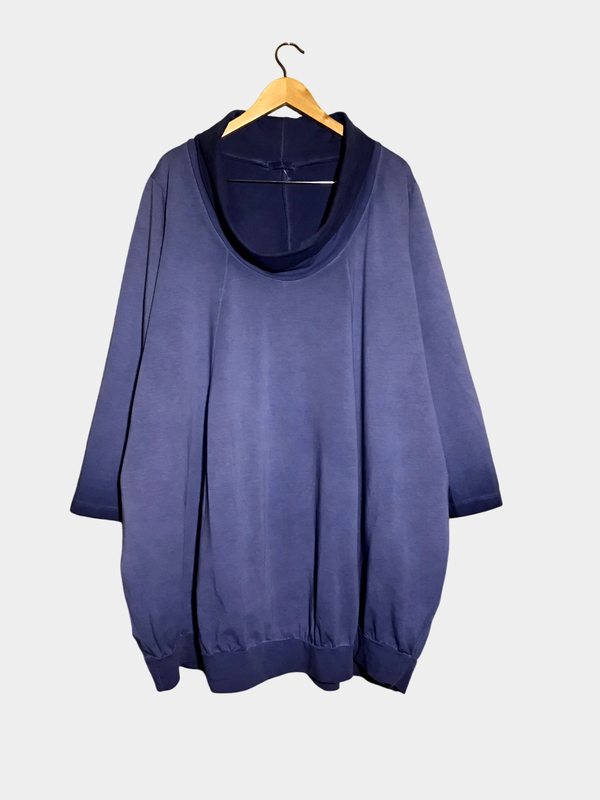 Трикотаж двунить. Крой свободный, грушевидный. Цвет светло синий с лёгким амбре. В спокойном состоянии: Полуобъём груди 70 Полуобъём талии 79 Полуобъём бедер 102 Полуобъём манжета 77 Длина 92 Длина рукава 60, ширина в биц. 22 Плечи 47 Состояние идеальное, без нюансов и дефектов!
