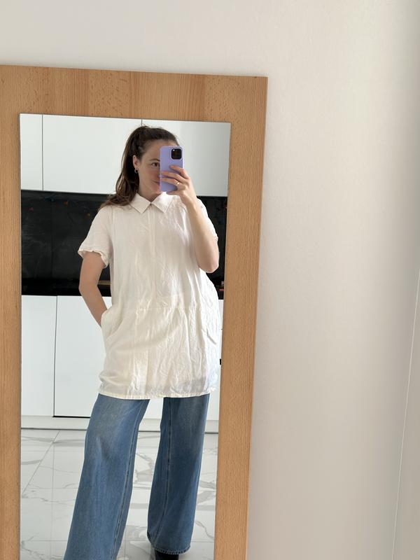Довжина 85 см У грудях 53 Є підкладка Біля кармашка невелика пляма (3 фото), її видно тільки якщо придивитись Одягнуто на модель зріст 170, параметри м