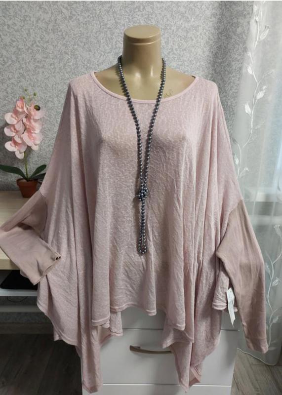 Женская туника в стиле бохо, нежно пудрового цвета, из вискозы, полиэстра и рукавами из коттона в рубчик. Размером 2Xl,3XL,4XlL. Новая с этикеткой, без повреждений, красиво тянется. Качество бомбезнение. Маде ін Italy.