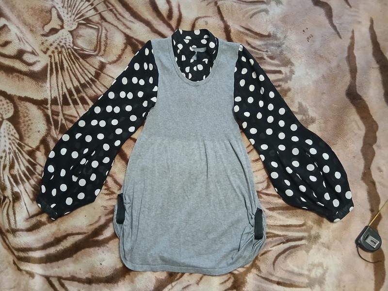 трикотажная туника хорошо тянется поэтому подойдет на несколько размеров, не кашлата и не растянутая,меет интересную форму рукава и устойчивую воротник,по бокам снизу интересный декор в виде замочков, подойдет как под джинсы так и под брюки или юбку, замеры на фото