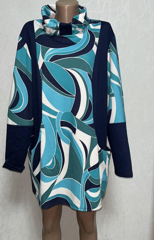 Красивое платье туника большое 18-20р. 56р., длина 77см, полуобхив в груди 65-67см, рукав 60см, Нова