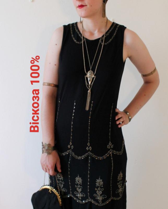 Шикарное вечернее, коктейльная туника, блуза или мини платье с вышивкой пайетками в стиле Great Gatsby як нова размер 16, на 49-42, тянется длина - 75 см ПОГ - 53 см тянется до 63 ПОС - 59 см, тянется к 69 плечи - 33 см #2