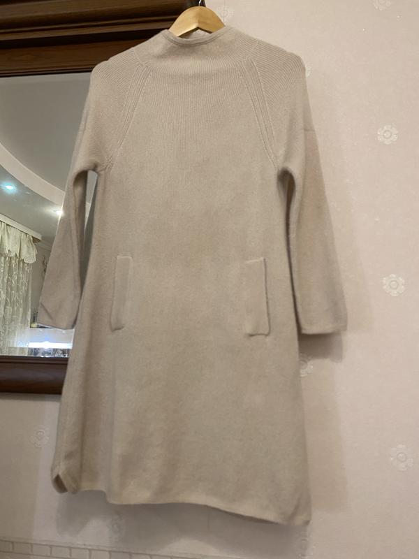 сукня светр світлого кольору від бренду 'S Max Mara. Max Mara - це італійський модний дім, синонім тихої розкоші (quiet luxury), класичної елегантності та високоякісних матеріалів. Лінія 'S Max Mara (де 'S часто асоціюється зі словом Studio або Simple та Stylish) була запущена пізніше (згідно з деякими джерелами, приблизно у 1990-х або 2000-х). • Концепція: Виріб має на етикетці гасло "DESIGN FOR EASY LIVING" (Дизайн для легкого життя). Це ідеально відображає концепцію лінії 'S Max Mara. • Стиль: Ця лінія пропонує більш розслаблений, повсякденний та універсальний одяг у порівнянні з основною, більш формальною лінією Мах Mara. Вона зосереджена на предметах, які легко комбінувати та які підходять для динамічного способу життя • Бренд: 'S Max Mara (дизайн для легкого життя - "DESIGN FOR EASY LIVING." • Тип виробу: Сукня/Светр • Стиль: Вʼязана сукня/туніка світлого бежевого кольору, з високим горлом ,довжиною приблизно до коліна, рукави 3/4 або довгі, в залежності від зросту, має кишені. • Склад тканини (згідно з етикеткою): • 100% LANA VIRCEN / PURE NEW WOOL Кишені з обох боків, але насправді вони зʼєднані в одну кишеню типу кенгуру. З боків трохи заокруглено Розмір вказано М. Рекомендую безпечну оплату, щоб приміряти. Заміри: НОГрудей 46 см Талія 43 см По низу 56 см Довжина по спинці 83 см Рукав реглан від горловини 62,5 см Ширина рукава по біцепсу 14 см Горловина по краю 21 см ( горловина типу гольф, але прилягає не щільно, а вільно) Сукня дуже гарна, але є нюанс: на рукаві була затяжка, я її заправила всередину, показала слід на останньому фото