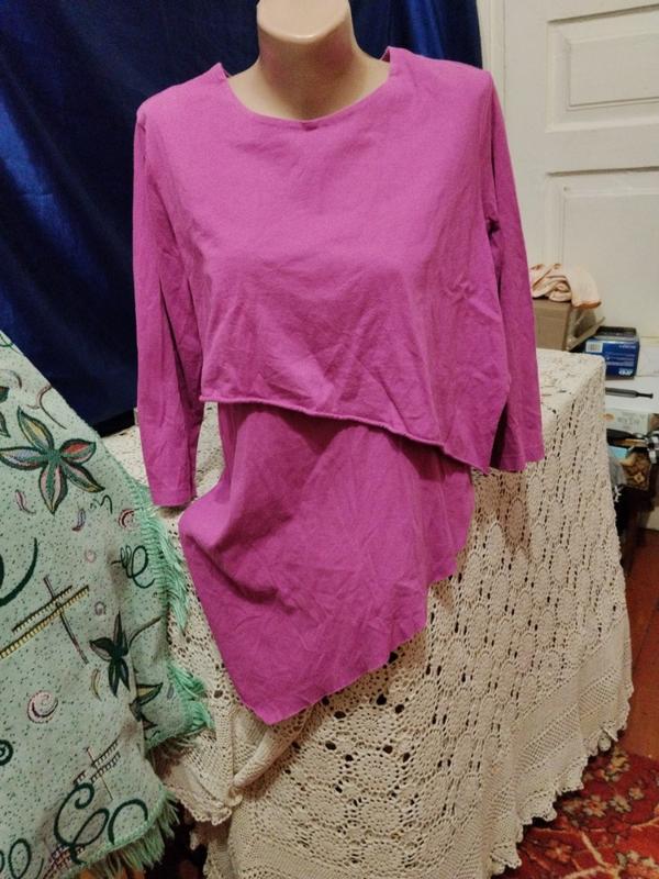 очень красивая серевая туника асиметрической формы.Ткань приятная к телу и хорошо тянется.Размвр м,л,хл. опис состояние отлочный длина 74 рукав 45 ширина комди 50