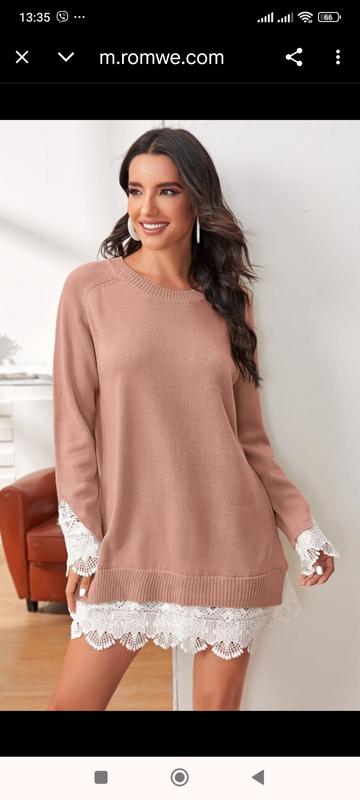 туника трикотажная, с тонким изысканным кружевом, цвета кофе с молоком. Не вдягалась. Длина без кружева 84см + 11см кружево. ПОГ 58см, ПОС 50см, рукав без кружева 50см+11см кружево. Плече 17см.