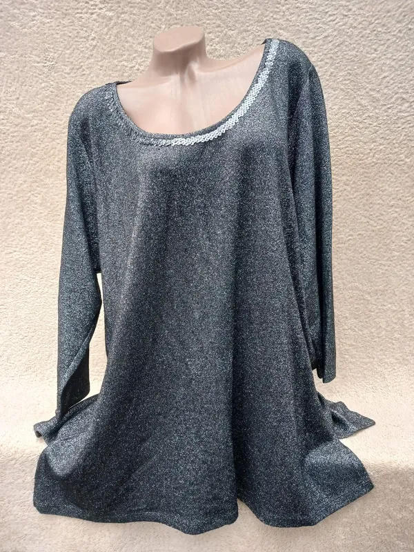 Мягкая люрисковая туника,горловина украшена паетками,не колется,смотрится нарядно,есть не много малозаметных катышек на рукавах,в носке не заметно вообще,в остальном состояние очень хорошее ПО груди 66-76, ПО бедра 74-84, рукав 54, длина 82 Замeры вeздe половина