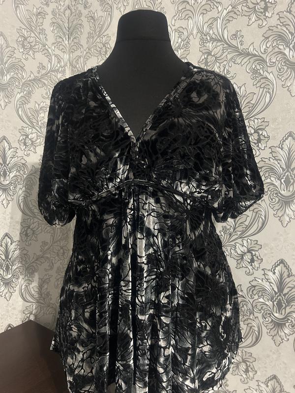 Дуже гарна велюрова туніка з оригінальним кроем. Тканина дуже красива Довжина 74 см,Пог 60+ см, пот 54 + см, Поб 75 + см