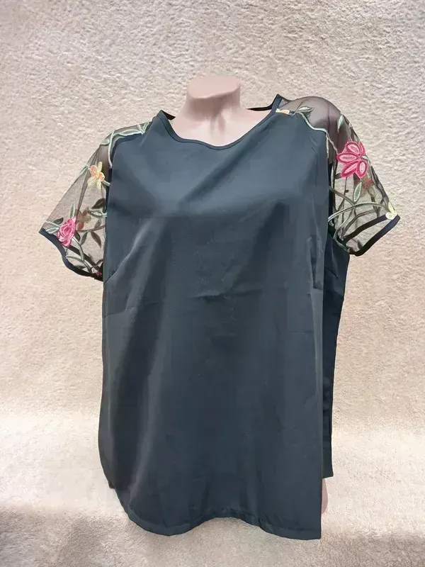 Славная черная туника, вышивка на фатине, полиэстер напоминает атлас, стали идеал ПО груди 57, ПО бедра 60, длина 64 Замеры отличий половина