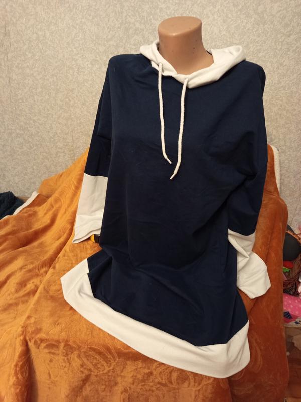 Туника с капюшоном весна-осень размер 44 Длина 80 см рукав 50 пог 54 пот 53 по внизу 59 темно синя.