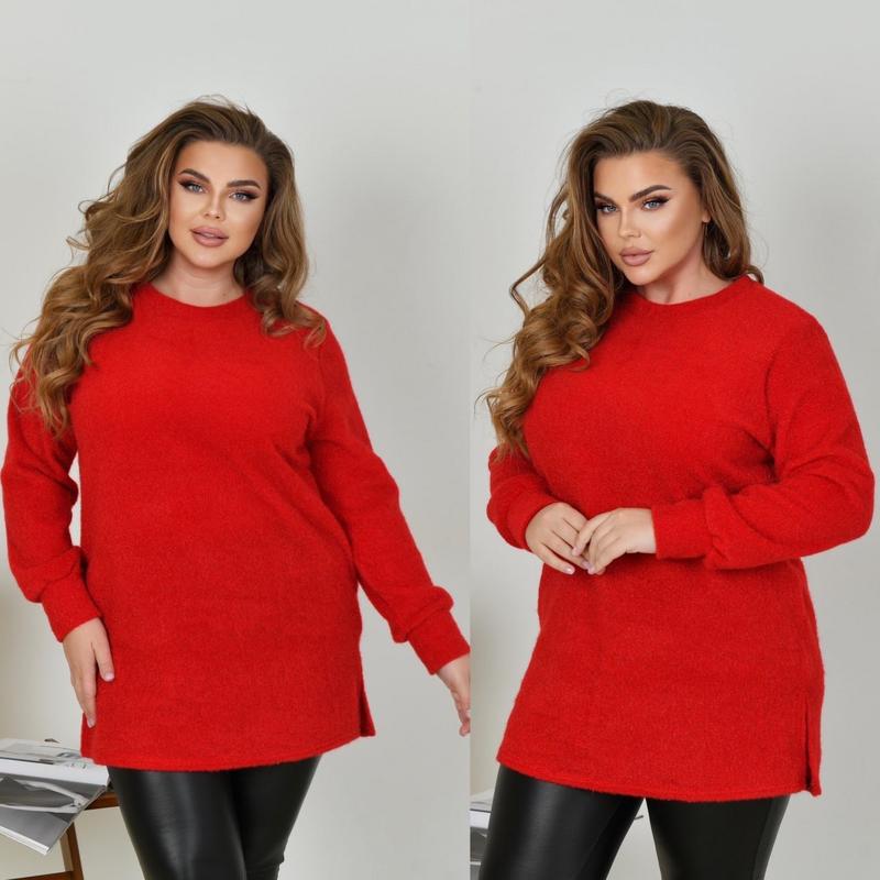 Туніка НОВИНКА💖💖💖 В НАЯВНОСТІ✅✅✅ Код 3808 Тканина: Альпака (Якість люкс). Кольори: червоний, бордовий, хакі, синій. Розміри: 52-54, 56-58, 60-62, 64-66. Довжина туніки: 79, 80, 81, 82 см. Довжина рукава: 61, 61, 62, 62 см. Обхват рукава: 40, 42, 44, 46 см. Заміри готового виробу: 52-54 ОГ 118 ОТ 116 ОС 120 56-58 ОГ 126 ОТ 124 ОС 128 60-62 ОГ 134 ОТ 132 ОС 136 64-66 ОГ 142 ОТ 140 ОС 144 На моделі показано цей розмір 52-54❗️ Зріст моделі 170 см. Oб’єми моделі ОГ 110 ОТ 85 ОС 115 см. Стильна повсякденна туніка із якісного вʼязаного трикотажу «Альпака» (розтяжність середня). Туніка прямого силуету, на фігурі має бути вільною, така модель. Рукав на манжеті. Виріз горловини круглий. З боків невеликі розрізи. Кишень, застібок немає.