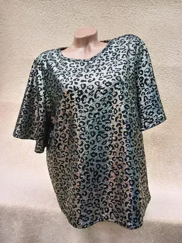 Нарядная туника, золото с черным, полиэстер трикотаж, состояние новой вещи ПО груди 61-67, ПО бедра 62-68, длина 65 Замеры отличия половина