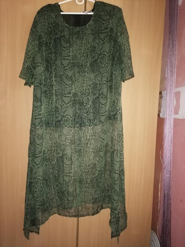 Шифонова тунiка So bin Ich! Размир D 50 NL 50, GB 24, F 52, I 56. ПОП 48 см, ПОГ 60 см, ПОТ 54 см, рукав 36 см, довжина 116 см, розрiзи сбоку 56 см, блискавка 52 см. Матерiал полiестер. Подкладка шифоновая до пояса длина 50 см.