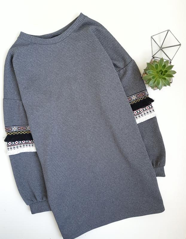 Фактурное платье- свитшот с обьемными рукавами в орнамент с бахрамой ✔️ПОГ 55 см ✔️Рукав від шиї 70 см ✔️Довжина 78 см