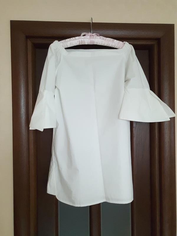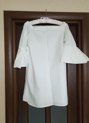 Классная,белоснежная,коттоновая туника ,с интересным рукавчиком. Плечики на резинке,поэтому хорошо держаться приспущенными .Ткань очень хорошо держит форму.