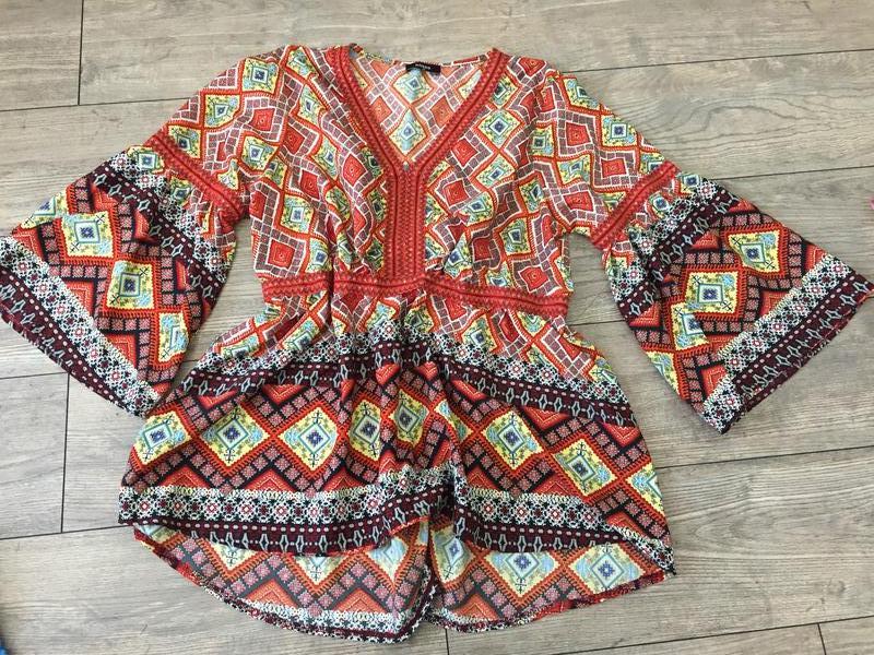 В идеальном состоянии, состав полиестер. Длина 81см, пог 63см.