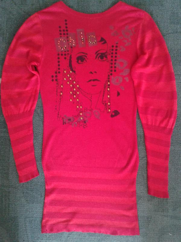 Очень красивая туника свободного кроя сверху, размер 36(S). Ткань хлопок с люрексом. Не кошлатится. Как новая! Сзади V-образный вырез. замеры:Длина изделия-86cм. Можно выше- ниже одевать, как удобно, за счет резинки на бедрах сидит отлично! Длина рукава-70см. Тоже можно выше-ниже. В плечах-41см Подмышки-45см. Талия-36см все замеры в не растянутом виде.
