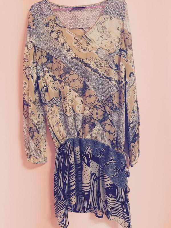 Отличное качество,очень нежная ,разрезы по бокам,куличках,ассиметричный края,под лосины или брюки,по линии кулиски расшита кружевом