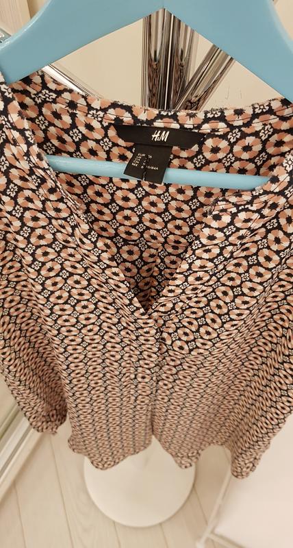 Туника H&M S 36. На М тоже подойдет. Состояние отличное . Одета 2 раза. 100% полиэстер. Ткань хоть и не натуральная, но очень приятная к телу. Длина спереди 75, сзади 80 Плечи 38 Пог 45/46 Поб 53 пот 49