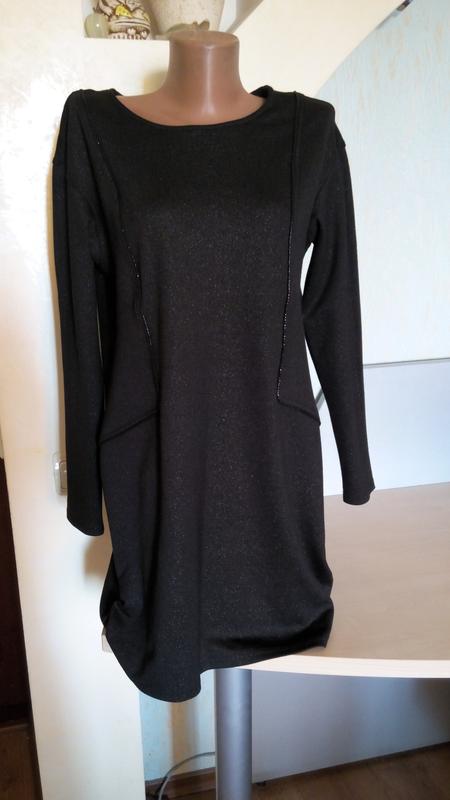Плотное платье туника темно серого цвета по бокам внизу небольшие сборки