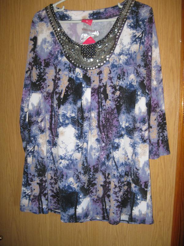 Новая cуперстрейчевая туника. Англ. р-р ХL Состав 95 % полиэстр. 5% эластан. Материал хорошо тянется. ПОГ 64 см . ПОТ-71 см. ПОБ- 74 см. Длина 80 см . Рукав 51 см. Все на фото. Английский сток. Обмена и возврата нет. Доставка комбинируется. 226