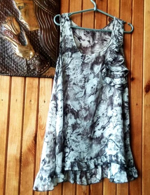 size 🥀 GEORGE 🥀 Морокко 16/44 Легка туніка,з квітковим сіро-білим принтом, поліестер. Попереду волан,знизу оборка. Тканина приєм -на на дотик і до тіла. 👉 Обов'язково ДО покупки звірте виміри: - ПОГ 48-49 см - ПОТ, ПОБ вільний крій - ПО низу 76 см - Бок.шов 55 см - Довжина спереду/ззаду 77/81 см - Плечі 36 см 🙂 З нетерпінням чекаю у мене на сторінці. Бажаю вдалих покупок і супер настрою.