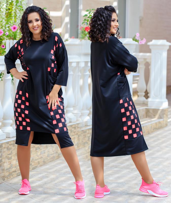 Платье- туника. # 119 (Ал-Коз)- (Спорт) Цена- ботала 490 грн. Цена-супер ботала 520 грн. Ткань: двунитка три.ж с лазернай резкой по ткани + микро масло.. Р.ры ботала: 48-50...52-54... Р.ры супер ботала: 56-58...60-62. Длина туники от плеча: по спинке 115 см...спереди- от плеча к короткой части: 100см. Рукава от горловины : 58см. Рост модели 176см. Параметры модели на момент съёмки: ОГ - 98см ОТ - 88см ОБ - 112см На модели одет 52р. Дополнительные характеристики: Туника свободного покроя с карманами и рукавами 7/8.. ФАКТИЧЕСКИЕ ЗАМЕРЫ по 48р : ширина груди туники-122см... Талия: 120см По бедрам: 122см. С каждым последующим размером добавлять + 4см на каждый размер...(кроме длины изделия) P.S Туника удобная..свободная. и главная изюминка этой модели- скрадывает все недостатки... идеально подходит для прогулок и отдыха. Цвет: чёрный с салатовым