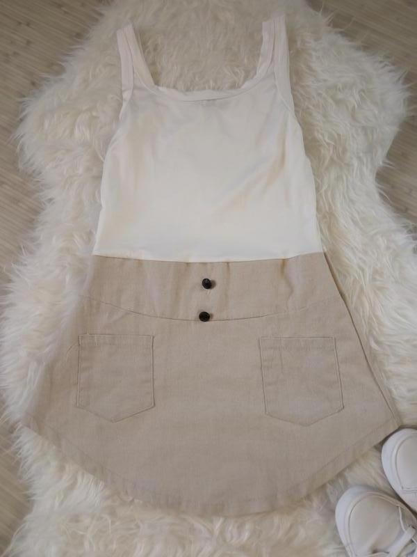 Длина71 Груди 38 Талия36 Стегна 44 Низ бежевий натуральний льон