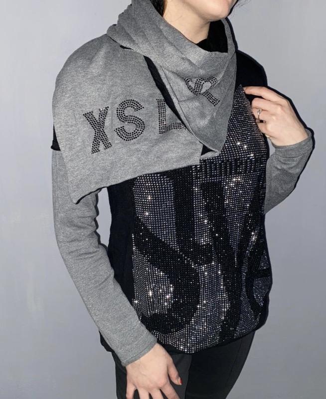 Яркая, в стразах туника . Идёт в комплекте с шарфиком . Можно носить под лосины , смотрится 💣💣💣 Отличное состояние . Без дефектов. Каждый камушек на месте . Качественный материал , очень приятен к коже .Размер универсальный . Подходит к S M
