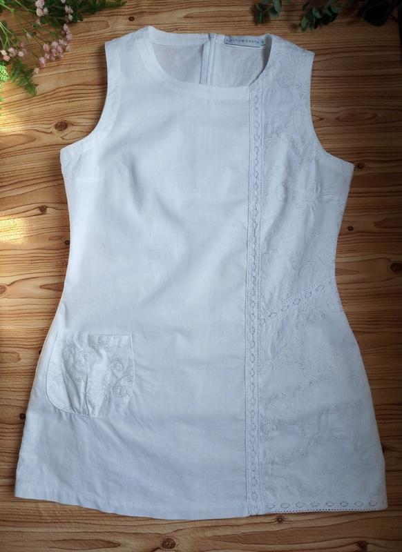 55% льон 45% віскоза Довжина - 75 см. ПОГ - 48 см. ПОТ 42 см. Півобхват знизу - 57 см.