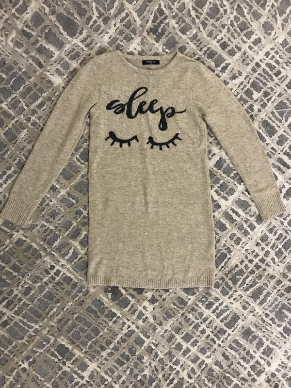 Тепле плаття підходить і на розмір S , якщо з пасочком. Довжина рукава 60, довжина плаття 81, ширина 42.