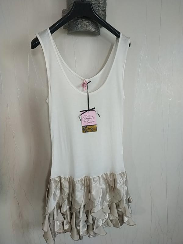 Очень нежная вещица.Трикотажный верх.Заявлен 10.В зависимости от роста может быть платьем или туникой.Хорошо тянется.ПОБ45 Длина85 ПОГ 38