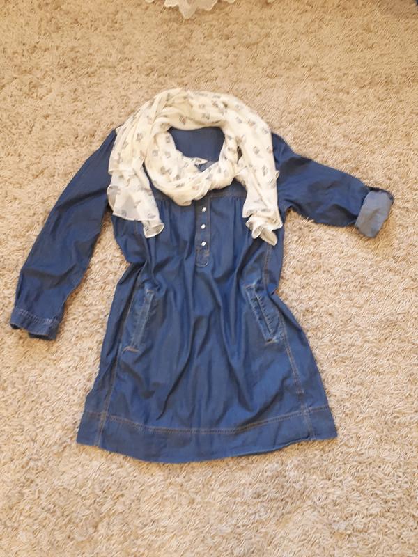 Чудове легеньке плаття-туніка.Кольру деннім.Чудово підійде під кросівки,в ідеальному стані.Рукав регулюється.Крій вільний.Довжина по спинці-90 см,півобхват грудей 55 см.