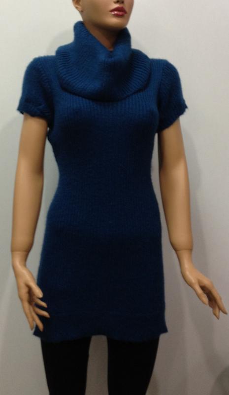 Туника мохерная с хомутом глубокого синего цвета очень теплая и приятная на ощупь вязкая - английская резинка, хорошо тянется. Замеры для размера М длина рукава - 16 см; длина изделия – 81 см.