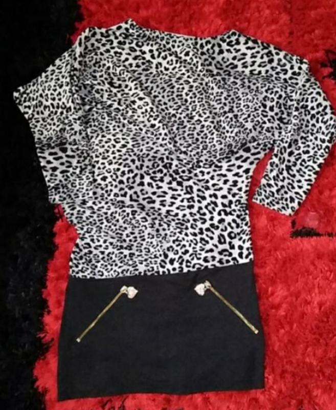 Дуже оригінальна туніка з леопардовим принтом. Крій - летюча миша. Горловина збоку. На фігурі виглядає бомбезно.