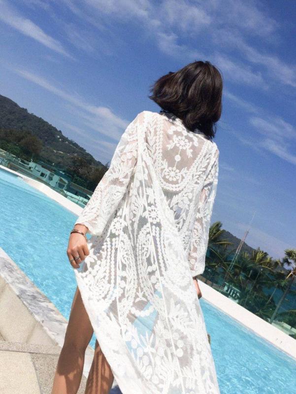 NEW COLLECTION 🖤 Довгі пляжні туніки з м'якого ажуру з вишивкою ▫️розмір: уні 42-46
